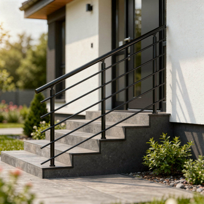 Hliníkové kulaté zábradlí na schody s horním kotvením. Tento model je navržen pro bezpečné a estetické řešení schodišť s možností úpravy dle specifických potřeb daného místa.