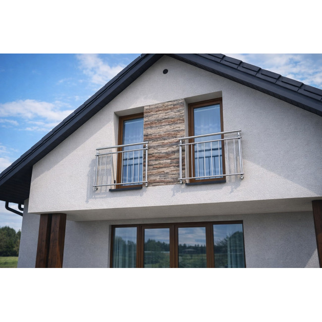 Hliníkové zábradlí na Francouzské okno H2B-2, Barva imitace nerez